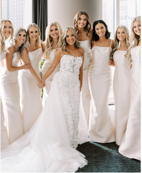 We are OBSESSED with this gorgeous real-life bride squad sporting style 2428 in Blush!