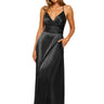 This sassy, stretchy charmeuse dress features a draped overlapping deep V-neck with delicate spaghetti straps, perfectly framing your neckline. The faux wrap A-line skirt adds a flirty flair while pockets bring a playful, practical touch. Effortlessly chic and comfortable, it’s your go-to for turning heads with confidence.