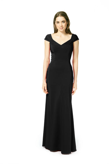 Step out in style with this playful V-neck Stretch Crepe dress, featuring flattering princess seams and a gently flared silhouette. The gathered cap sleeves add a sweet touch, while the twisted back reveals a cheeky keyhole detail for a flirty vibe. Crafted from stretchy fabric, it ensures all-day comfort with a fun twist.