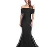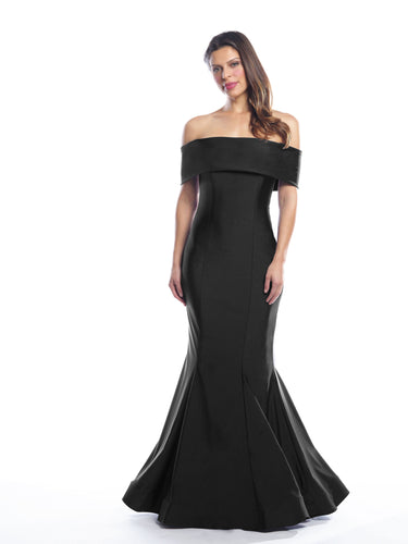 This chic dress features an off-the-shoulder lapel bodice paired with a flirty godet trumpet skirt. Made from 4-way stretch fabric, it moves with you for an easy, comfortable fit. It includes added coverage with a self knee-length lining.