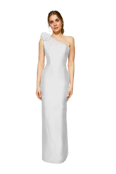 Step out in style with this sleek sheath dress, boasting a fun floral detail on the shoulder and a flirty slit at the center back. Made from luxurious Mikado fabric, it’s perfect for adding a playful twist to your wardrobe.