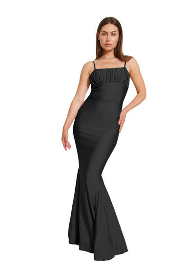 Get ready to celebrate in this figure-hugging dress that perfectly embodies Y2K vibes! It boasts delicate spaghetti straps and a mermaid skirt enhanced with godets and a horsehair hem, making it ideal for dancing the night away. The vertically pleated bust offers a distinctive touch that’s a nostalgic nod to the 90's, while the 4-way stretch fabric guarantees a comfortable and easy fit. For lighter shades, we recommend opting for the full-length lining for added coverage and confidence.