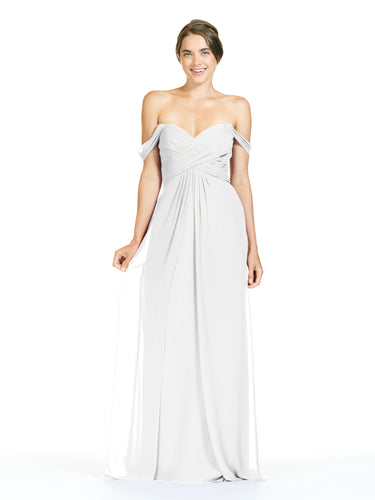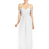 Embrace your inner goddess with this enchanting empire waist, pleated sweetheart bodice adorned with whimsical off-the-shoulder drapes. The skirt flows in a dreamy A-line silhouette with a sheer split overlay, plus delightful pockets to stash your go-to lip gloss! Crafted from airy Bella Chiffon, this dress is truly ethereal!