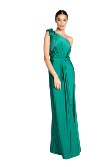 This playful dress features a gathered one-shoulder with an adorable bow and the cutest slim waistband. The fitted A-line skirt is gathered for a fun, flirty look. Made from 4-way stretch fabric, it offers an easy, comfortable fit. The bodice is self-lined, and for lighter colors, we suggest choosing the full-length lining for extra coverage.