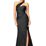 This playful dress features a sweetheart diagonal draped bodice with a fun asymmetrical one-shoulder strap and a fitted flared skirt with a flirty slit. Made from 4-way stretch fabric for an easy, comfortable fit, it includes a self-lined bodice. For lighter colors, we suggest adding a full-length lining for extra coverage.