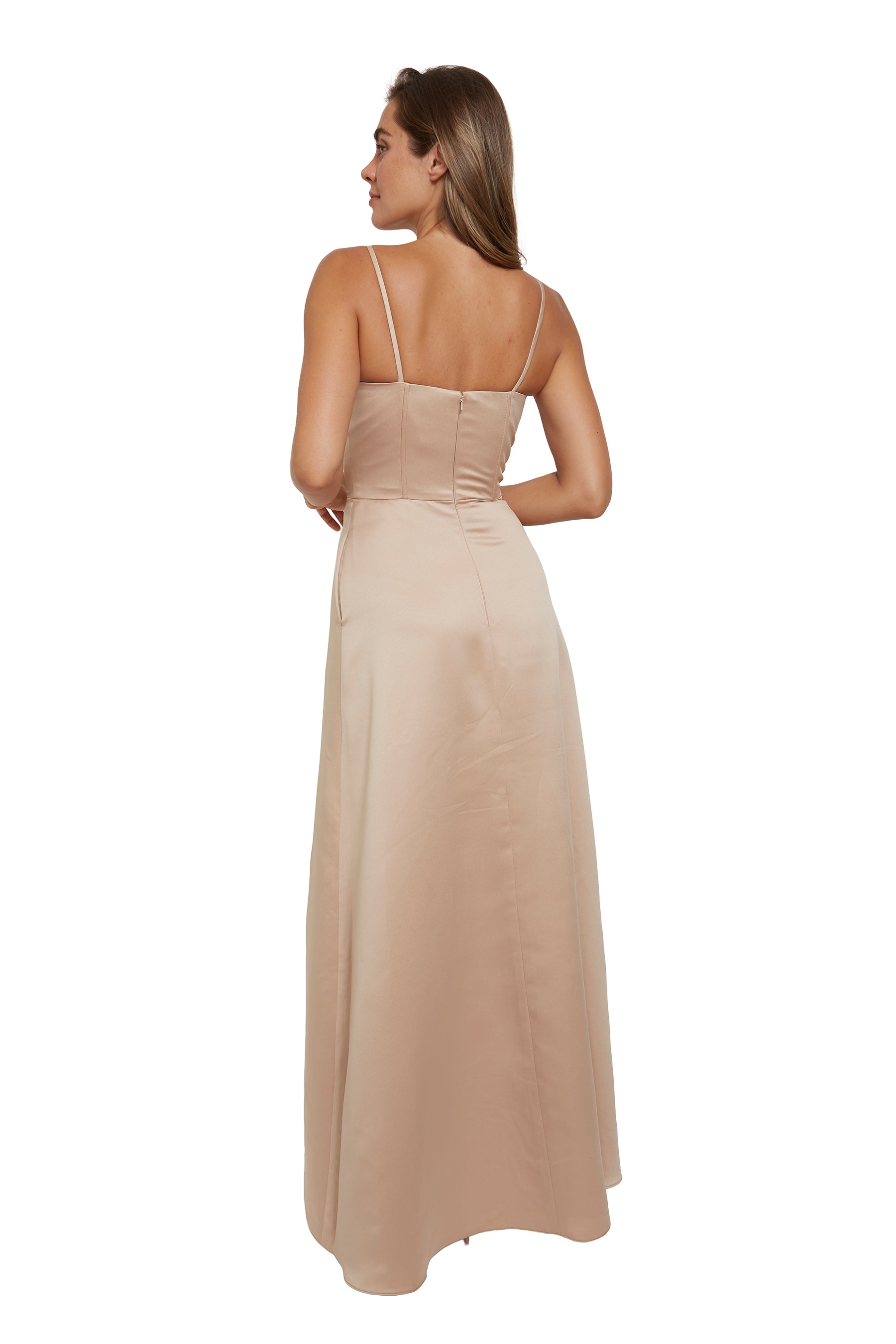 Beautifully designed sexy corset bodice with a full A-line skirt that includes convenient pockets and a fashionable slit, made from luxurious Mikado fabric.