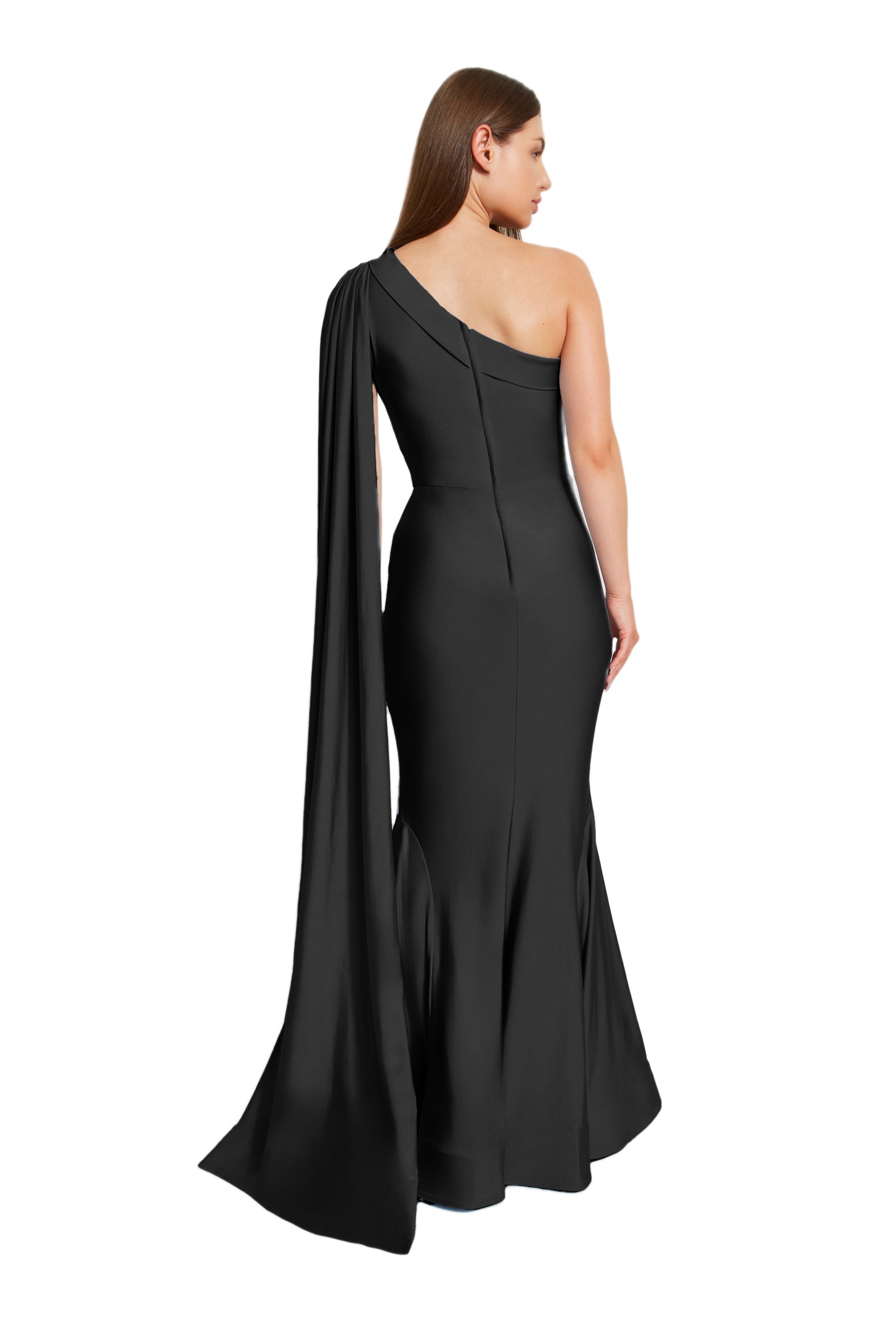 Steal the spotlight with a draped one-shoulder stunner! This showstopper flaunts a fold-over bodice and a mermaid skirt that’s ready to twirl with godets and a horsehair hem for that extra pizzazz. Made with our 4-way stretch fabric, it's as comfy as it is fabulous. Comes with a knee-length lining, but we suggest opting for full-length on those lighter shades for optimal coverage.