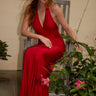 Make statement in this playful dress! The halter V-neck and empire waist create a gorgeous silhouette with slight gathering under the bust. Turn around to reveal the open back with a fun tie and keyhole—a playful surprise. 4-way stretch fabric keeps you comfortable all night long!