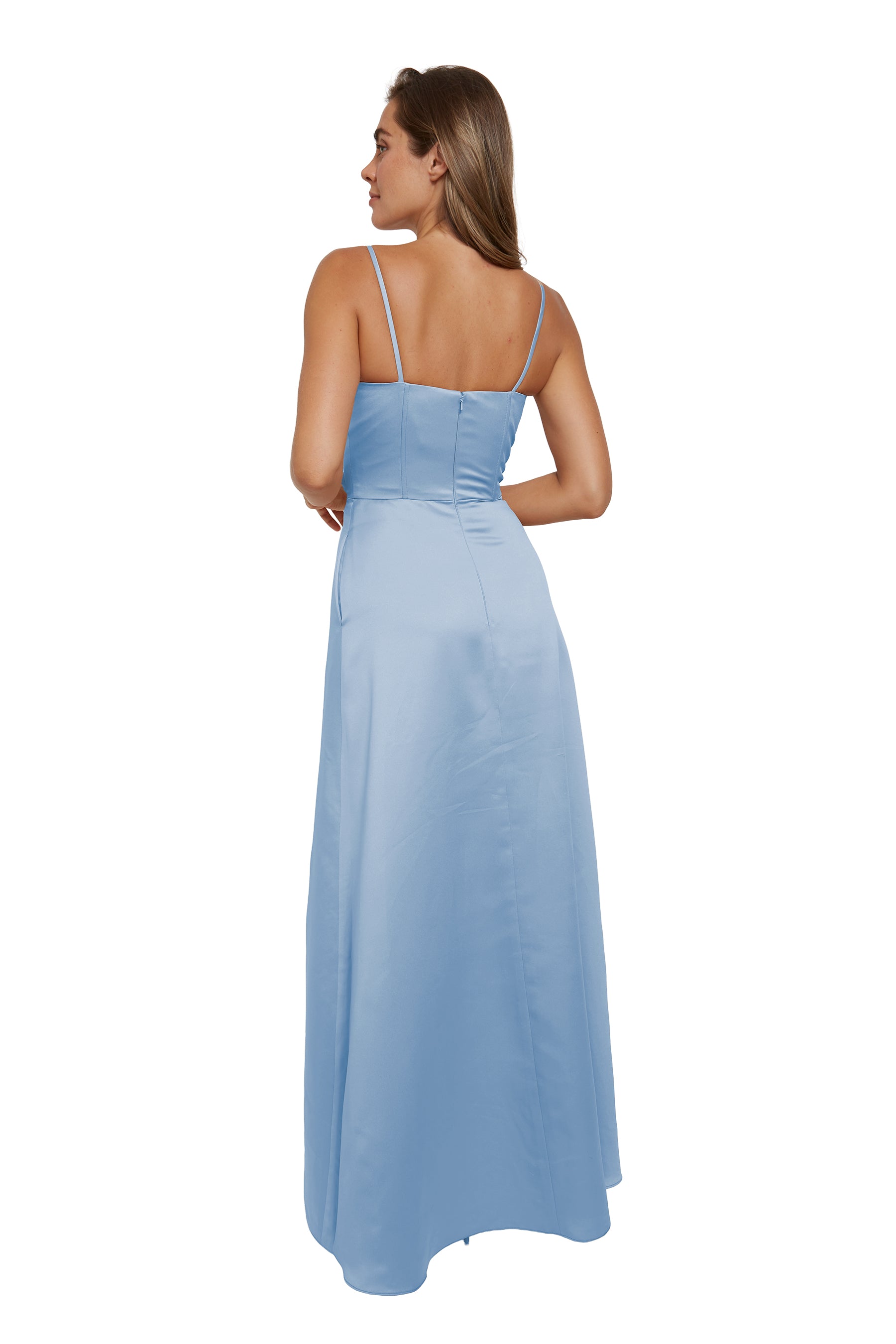 Beautifully designed sexy corset bodice with a full A-line skirt that includes convenient pockets and a fashionable slit, made from luxurious Mikado fabric.