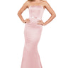 A sophisticated strapless mermaid silhouette crafted in luxurious Mikado fabric, finished with a matching delicate bow at the waist that adds a touch of refined femininity to the timeless silhouette.