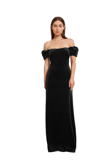 We just love a convertible moment! Elegant straight neckline bodice with versatile subtle puff sleeves that can be styled on or off-the-shoulder so you can rock it how you like or switch up your look halfway thru the night! Slim fitting straight skirt. Crafted from our Stretch Velvet for a comfortable fit.