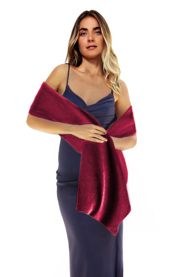 19x72" single layer slightly stretchy Velvet shawl. Add a bit of extra coverage to any style! Our shawls are available in all fabrics and colors!