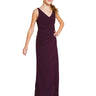 Tapered dress with a V-neck bodice and diagonal pleated faux wrap skirt. |