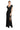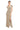 V-neck empire bodice with flutter sleeves and tied corset back. Slim A-line skirt with slit.