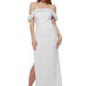 Get ready to make a statement in this stunning Bella Chiffon gown with an off-the-shoulder chiffon rose trim that just screams cottage-core! The pleating adds a touch of elegance, while the fitted A-line skirt with a flirty slit keeps things fun and playful. This feminine silhouette delicately drapes your curves and is perfect for any occasion!